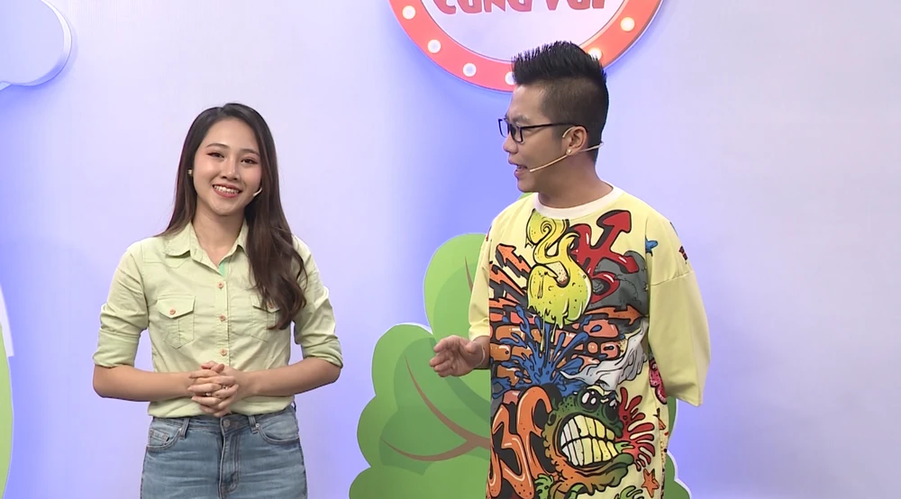 MC Hoàng Rapper và MC Kim Thảo chia sẻ kinh nghiệm khi dẫn chương trình về trẻ nhỏ. Ảnh: BEE