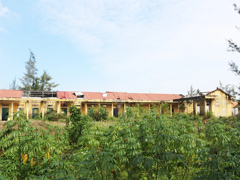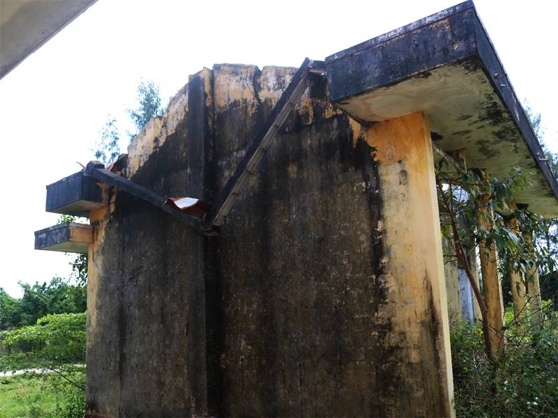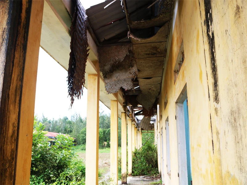 Sau khoảng 10 năm bỏ hoang, công trình tái định cư đã xuống cấp nặng, hư hỏng trầm trọng do mưa bão dẫn đến tốc mái, hư cửa và mái tôn bị bong tróc.