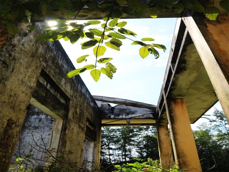 Nhiều phòng đã không còn mái ngói, cây cối mọc um tùm ngay giữa phòng.