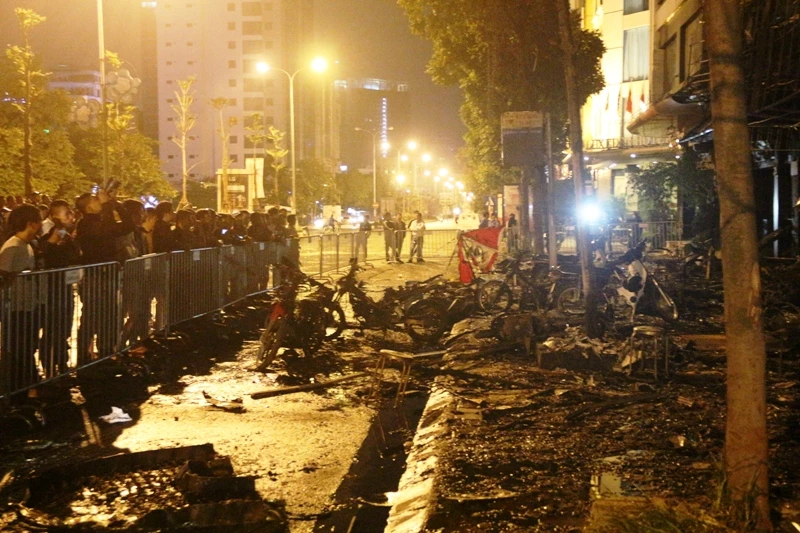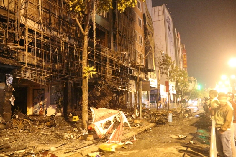 Ghi nhận của PV tại hiện trường sau vụ cháy toàn bộ bốn ngôi nhà liền kề cạnh nhau đều bị ảnh hưởng nặng nề, trong đó có ngôi nhà 68 nơi được lực lượng chức năng tìm thấy toàn bộ 13 nạn nhân ở phòng hát 502, tầng 5 của tòa nhà. Các biển quảng cáo, nhiều xe máy trước cửa của một số tòa nhà đã bị thiêu rụi.