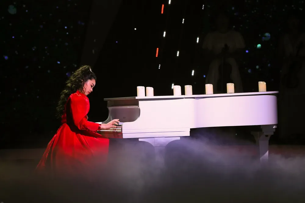Riêng em út của Hãy nghe tôi hát nhí khiến các giám khảo “mắt tròn mắt dẹt” khi trổ tài chơi piano và trống với hai đoạn độc tấu cực điêu luyện.