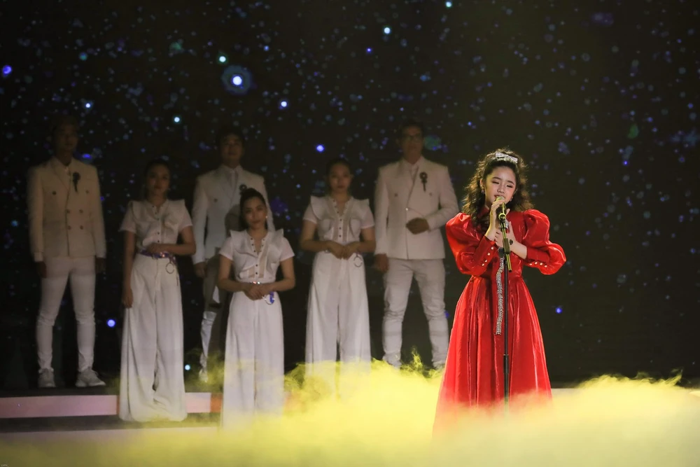 Giành giải 3 là cô bé Quỳnh Anh. Em liều lĩnh chọn cho mình một ca khúc mang âm hưởng dân ca đương đại rất khó là Thư pháp.
