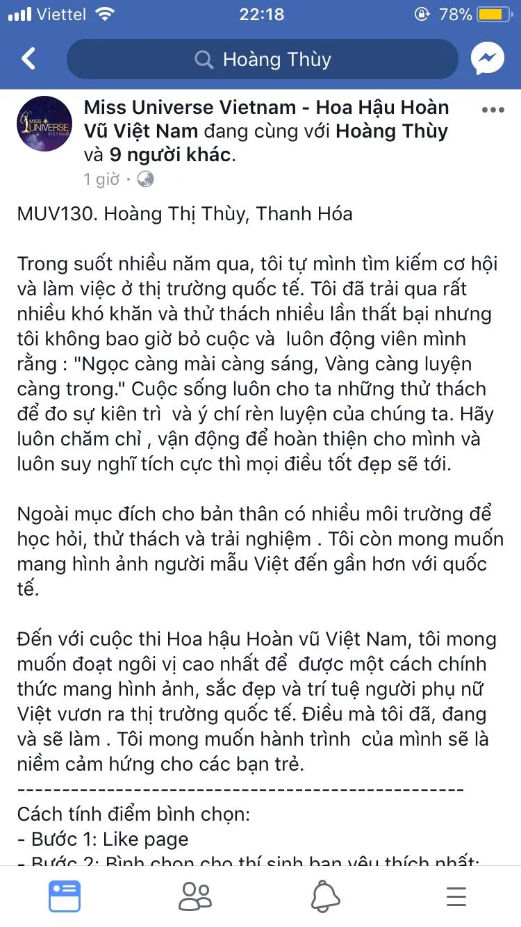 Thông tin Hoàng Thùy tham gia cuộc thi được rất nhiều người ủng hộ.