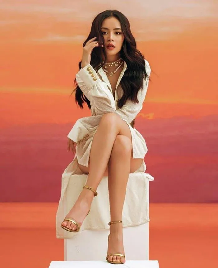 Ca sĩ, diễn viên Chi Pu cũng khoe chân dài gợi cảm.