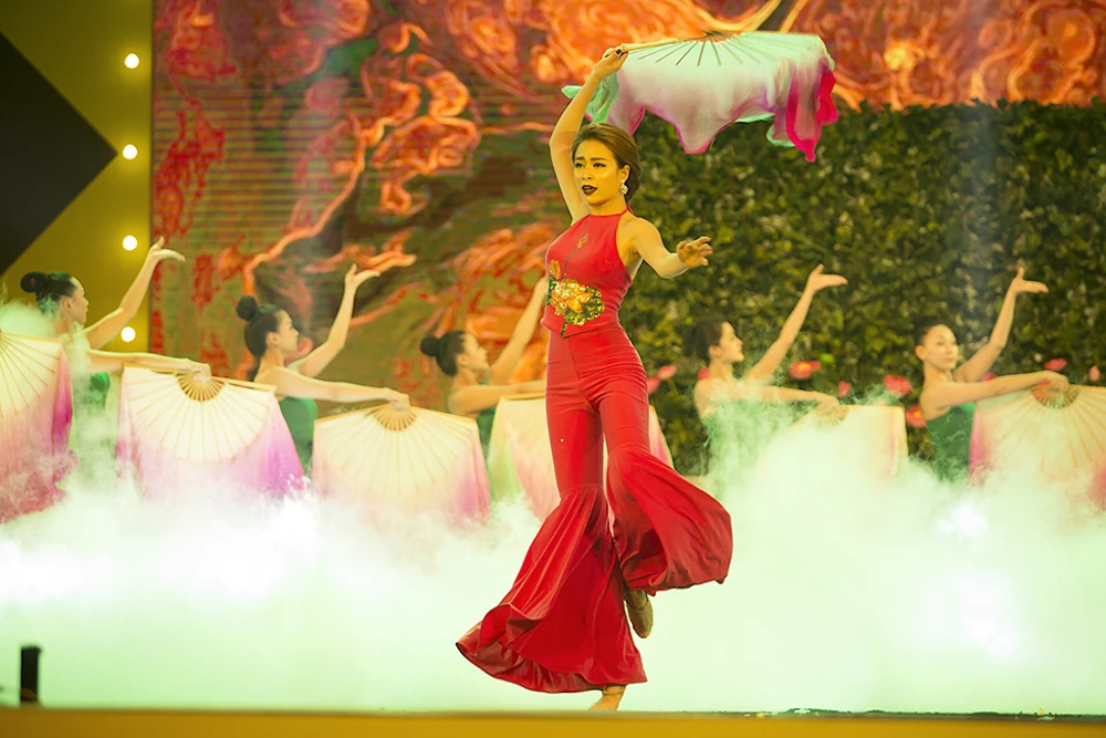 Hoàng Thùy Linh biểu diễn lại Bánh trôi nước trong lễ trao giải. Ảnh: HUY TRẦN