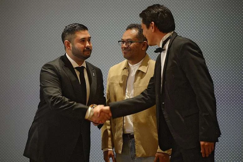 Hoàng tử Ismail bắt tay Tổng Thư ký FAS Winston Lee và chủ tịch FAS Nordin