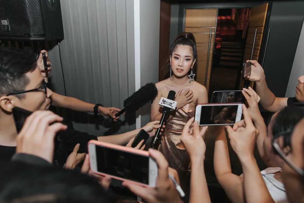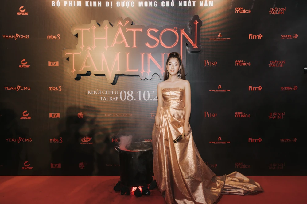 Là nữ chính của phim, Hoàng Yến Chibi có mặt từ sớm để giao lưu với khán giả. Cô chọn chiếc váy cúp ngực, tóc búi cao, toát lên vẻ sang trọng. Hình ảnh này khác hoàn toàn với nhân vật đảm nhận, Sỏi - cô gái bị câm điếc trong phim. Hoàng Yến Chibi cho biết đây là vai diễn khó nhất, cực khổ nhất và ám ảnh nhất trong sự nghiệp điện ảnh tính đến thời điểm này.