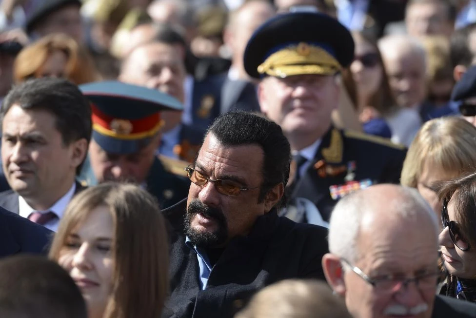 Diễn viên nổi tiếng của Mỹ Steven Seagal có mặt tại buổi diễu binh của Nga (Nguồn: Reuters)