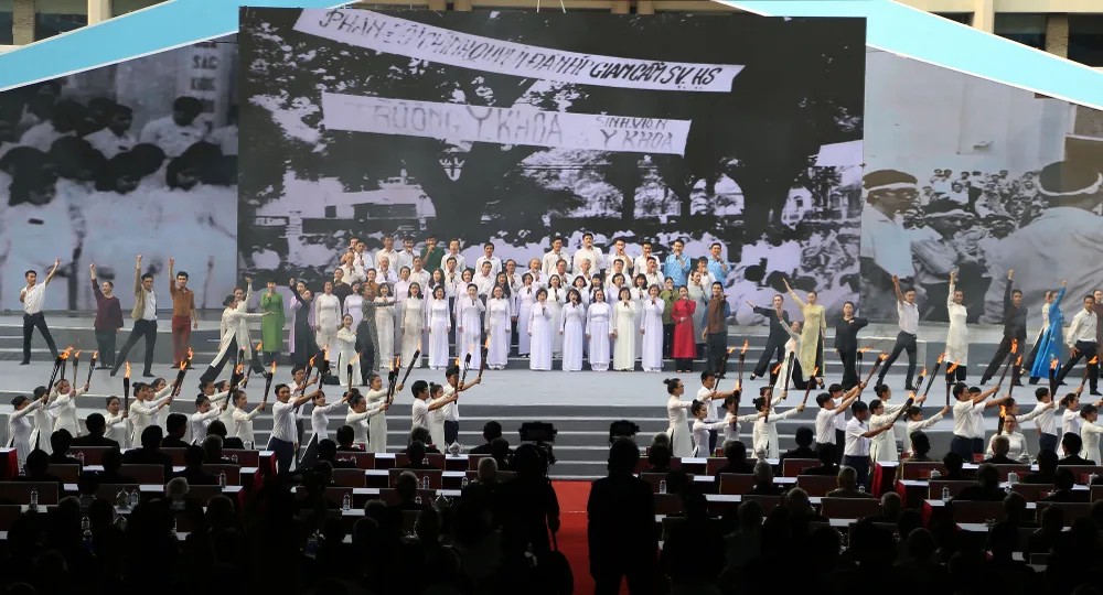 Chương trình lễ kỷ niệm 50 năm cuộc Tổng tiến công và nổi dậy xuân Mậu Thân 1968 với chủ đề “Bản hùng ca xuân Mậu Thân 1968” diễn ra tại Hội trường Thống Nhất (TP.HCM) với chủ đề Bản hùng ca xuân Mậu Thân.