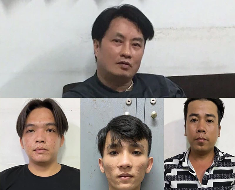 Ngày 15-7, Công an quận 1, TP.HCM tạm giữ hình sự Nguyễn Bá Huy (48 tuổi), Lê Ngọc Cường (24 tuổi) Mạnh Minh Hùng (33 tuổi), Nguyễn Văn Đạt (24 tuổi) để điều tra về hành vi môi giới mại dâm. Ảnh: CA