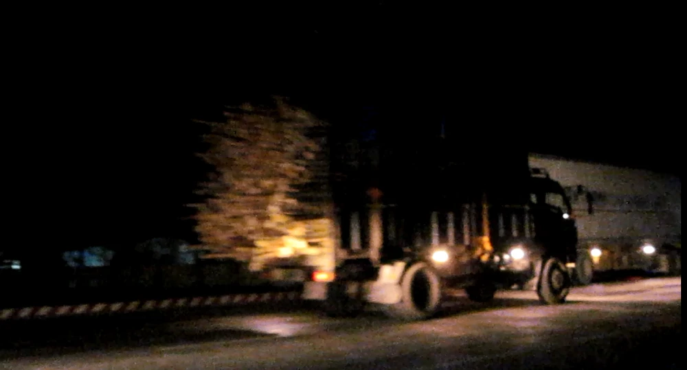Khi chưa có đoàn của lãnh đạo công an tỉnh Thừa Thiên – Huế xuống kiểm tra những chiếc xe gỗ tràm vẫn ung dung qua trạm. Ảnh cắt từ clip. Ảnh: VIẾT LONG