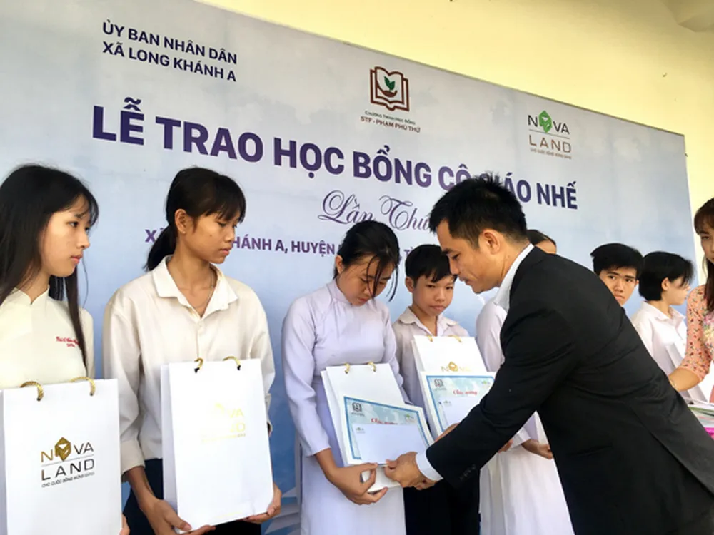 Thông qua Quỹ STF, mới đây Tập đoàn Novaland đã trao tặng 180 suất học bổng Cô giáo Nhế đến các em học sinh hiếu học có hoàn cảnh khó khăn, đồng thời đóng góp 80 triệu đồng đến Quỹ khuyến học của tám trường thuộc các xã Long Khánh A và Long Khánh B, huyện Hồng Ngự, tỉnh Đồng Tháp.