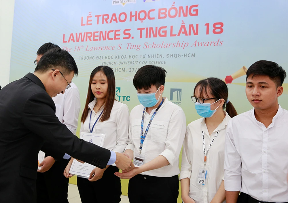 Sáng ngày 27-8, tại Trường ĐH Khoa học Tự nhiên TP.HCM, Công ty TNHH Phát triển Phú Mỹ Hưng và Quỹ Hỗ trợ cộng đồng Lawrence S. Ting đã tổ chức trao 13 suất học bổng Lawrence S. Ting cho những sinh viên vượt khó, học giỏi của trường. Mỗi suất học bổng có trị giá 14 triệu đồng/năm học.