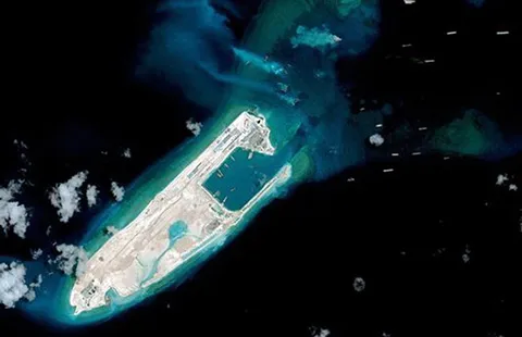 Ảnh chụp vệ tinh đá Chữ Thập thuộc quần đảo Trường Sa của Việt Nam mà phía Trung Quốc chiếm đóng, xây dựng trái phép. (Nguồn: AFP)