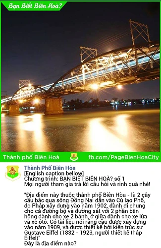 Bài đăng của kỳ đầu đầu tiên ra câu đố về địa danh cầu Ghềnh có lịch sử hơn 100 năm ở Cù Lao Phố nhận được sự hưởng ứng lớn của các bạn trẻ, có hàng trăm câu trả lời, chia sẻ và bình luận rôm rã.