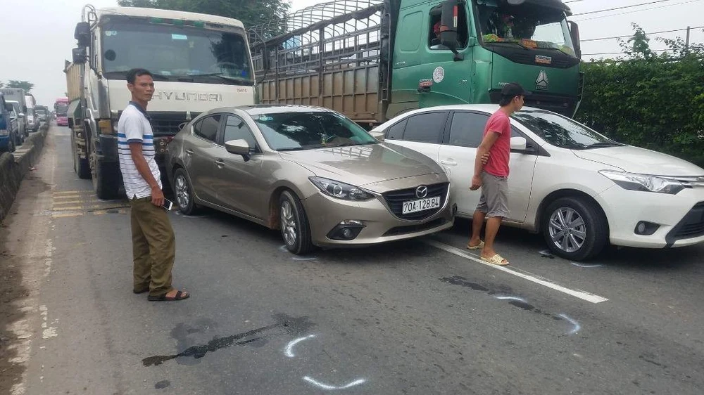 Khi còn cách đường Nguyễn Văn Bứa khoảng 50 m (xã Xuân Thới Sơn, huyện Hóc Môn), xe này va chạm mạnh vào đuôi ô tô con 70A-128.84 làm xe này văng lên phía trước, tông tiếp vào hai ô tô khác.