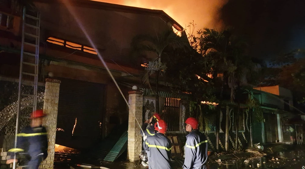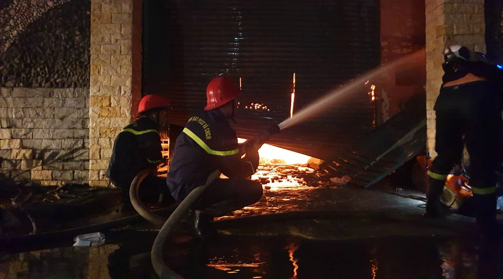Lực lượng PCCC đang dập lửa. Ảnh: NGUYỄN TÂN