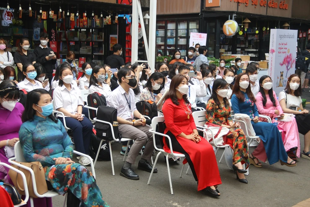 Mới đây, tại Đường Sách TP.HCM diễn ra buổi giao lưu chuyên đề Làm thế nào để viết một tác phẩm và xuất bản một quyển sách với nhà văn, nhà báo Trung Nghĩa và gần 100 học sinh (HS) chuyên văn trường THPT Lê Hồng Phong.
