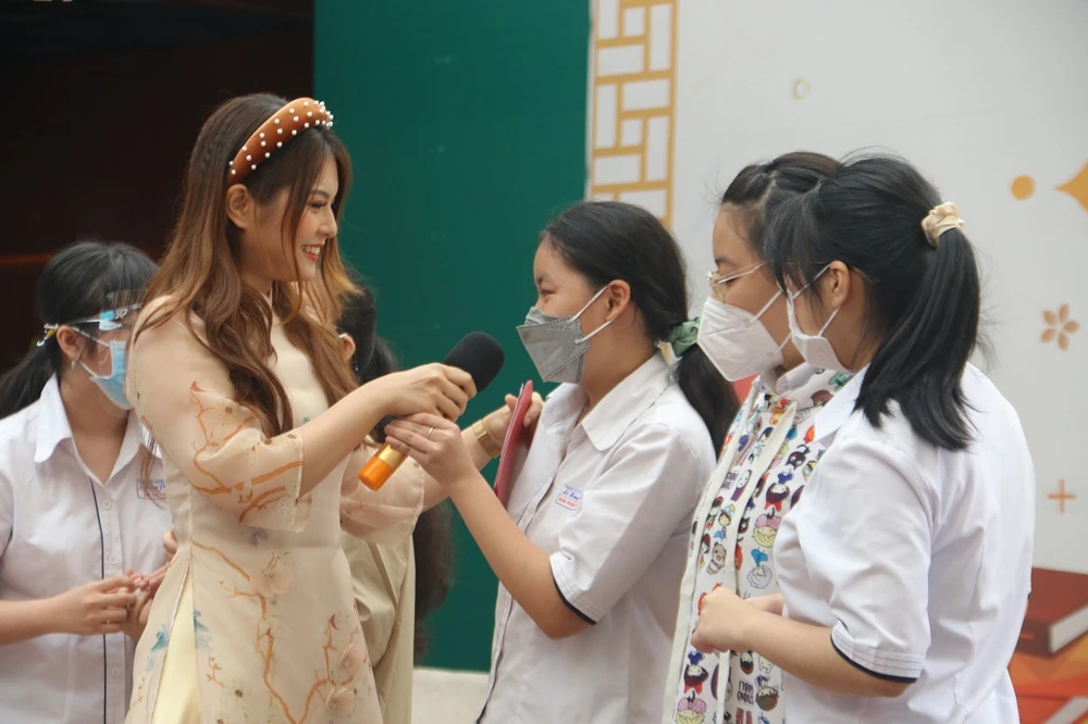 Trong buổi giao lưu, nhà văn Phương Huyền vô tình có mặt và được mời lên sân khấu trò chuyện cùng các HS. Nhà văn chia sẻ với các HS rằng chất liệu sáng tác không ở đâu xa mà ở ngay bên cạnh chúng ta, chính từ những câu chuyện xảy ra xung quanh cuộc sống.