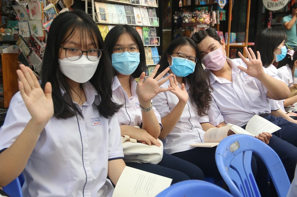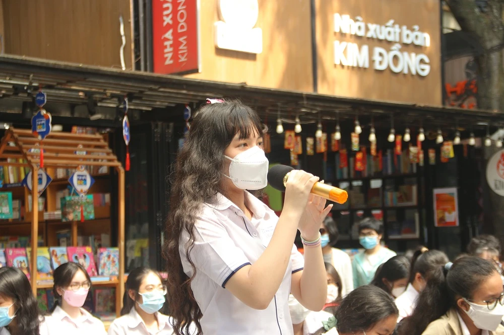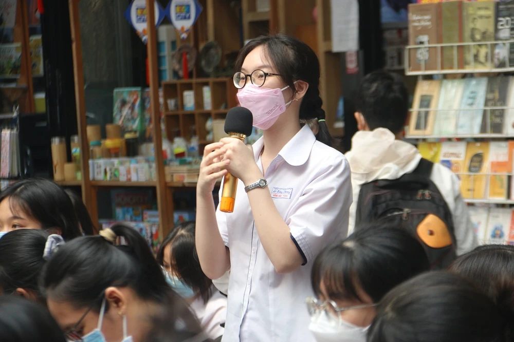 Phạm Kim Loan (HS lớp 11 chuyên văn 2 trường THPT Lê Hồng Phong) cũng có đam mê với sách từ năm lớp 7. Kim Loan chia sẻ: “Em may mắn khi có cơ hội đến đây để nghe nhiều điều thú vị xoay quanh một quyển sách. Em thích đọc nhiều sách vì nó mang đến nhiều thông điệp ý nghĩa về đam mê và hành trình khám phá bản thân. Các nhà văn ở đây là động lực và là hình mẫu em muốn hướng tới”.