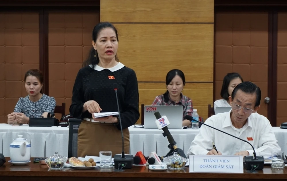 Bà Phan Thị Bình Thuận, Phó Giám đốc Sở Tư pháp, thành viên đoàn giám sát bày tỏ ý kiến tại buổi làm việc. Ảnh: DANH NGUYỄN