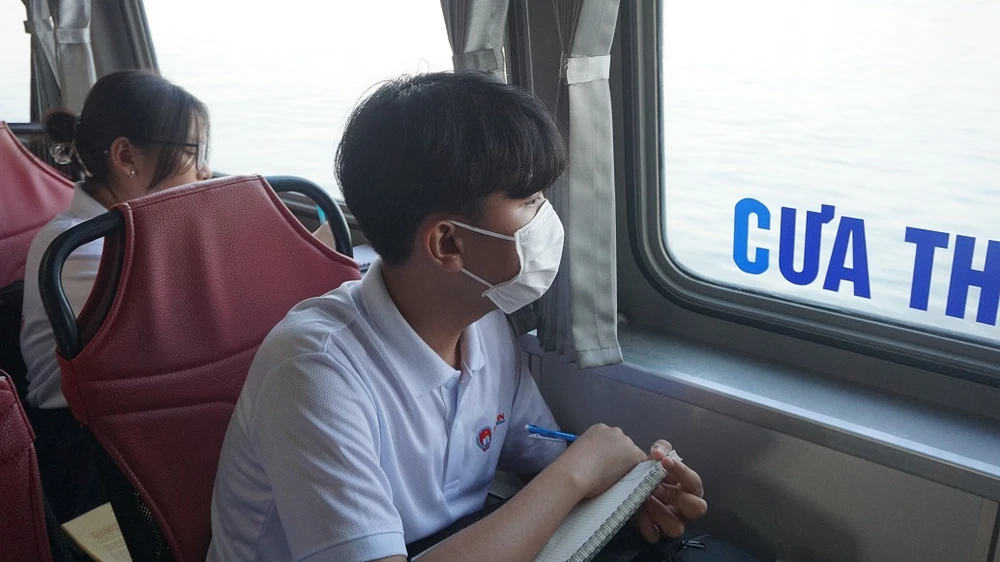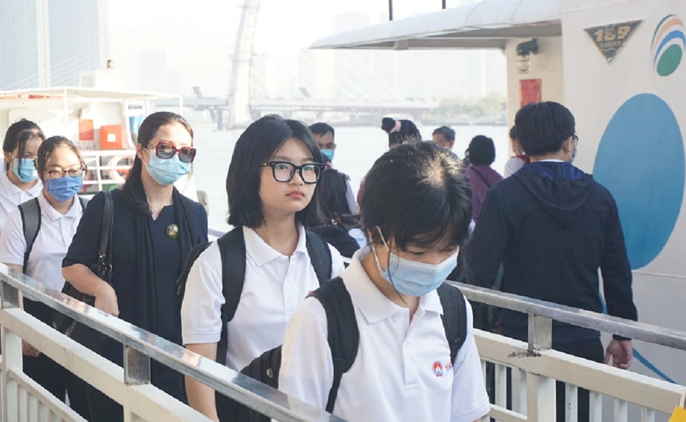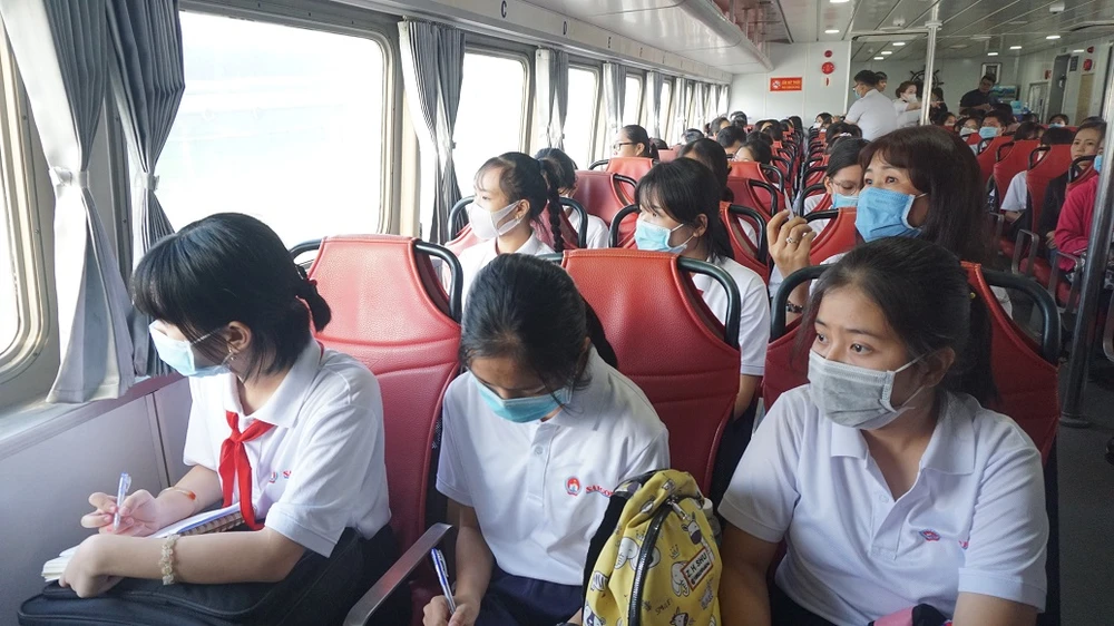 Em Ngô Mai Phương, lớp 7A, HS trường THCS Thông Tây Hội, quận Gò Vấp chia sẻ, đây là lần đầu tiên em được trải nghiệm tàu cao tốc để ngắm nhìn TP.