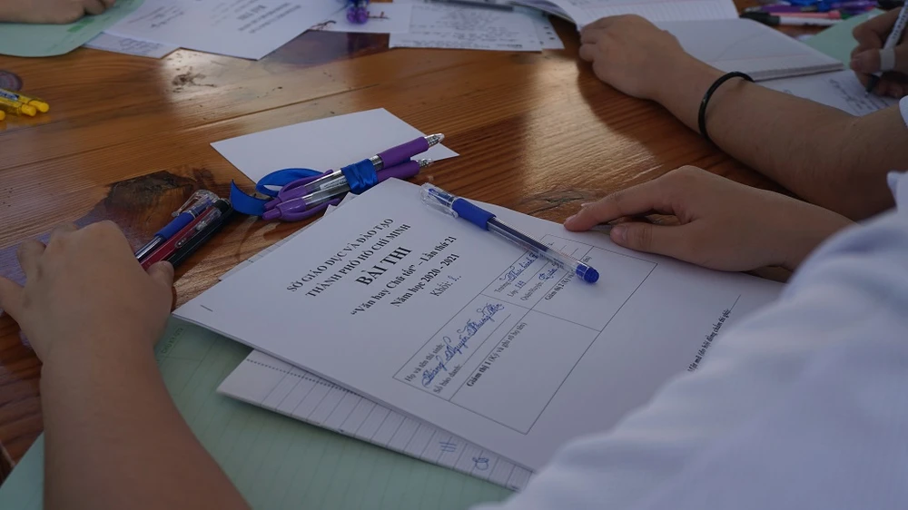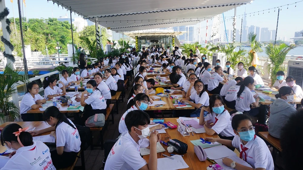 Sáng 7-1, Sở GD&ĐT TP.HCM tổ chức cuộc thi Văn hay chữ tốt cấp TP dành cho 162 HS đại diện cho phòng GD&ĐT ở 24 quận, huyện trên địa bàn TP. Hội thi diễn ra tại bến tàu cao tốc Bạch Đằng.