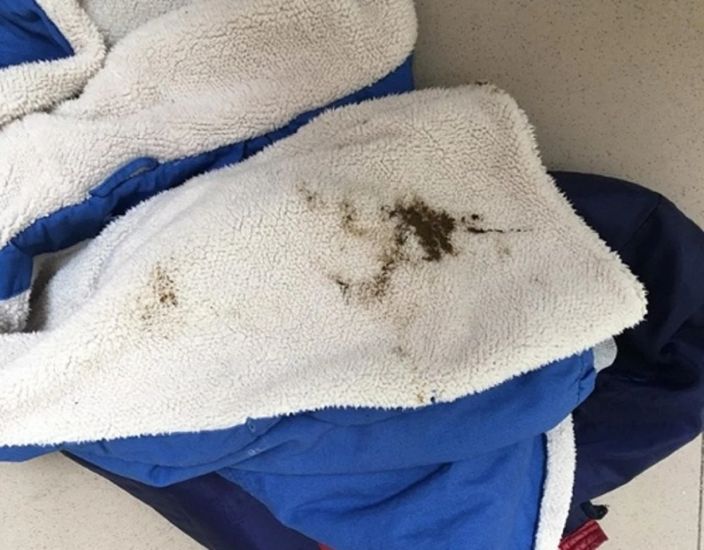 Ngày 12-1-2018, khi đang làm việc, anh Trung nhận được điện thoại của cô giáo chủ nhiệm thông báo việc con anh bị phân dính đầy người từ chiếc áo để quên ở lớp.