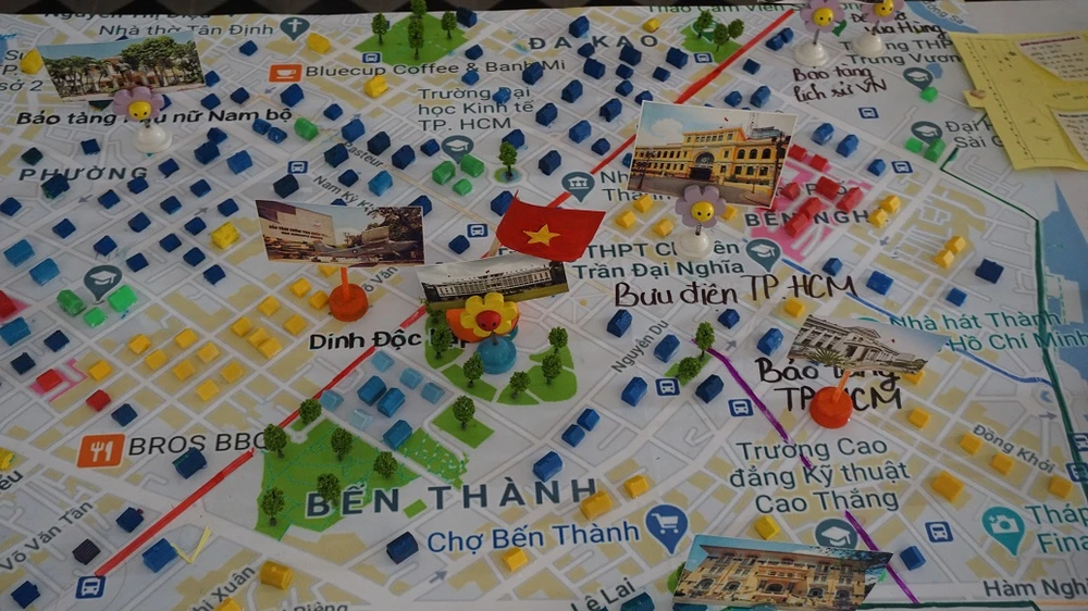 Tới buổi báo cáo, nhóm học sinh trường THPT Bùi Thị Xuân, quận 1 đã thiết kế một bản đồ về di tích lịch sử TP.HCM.