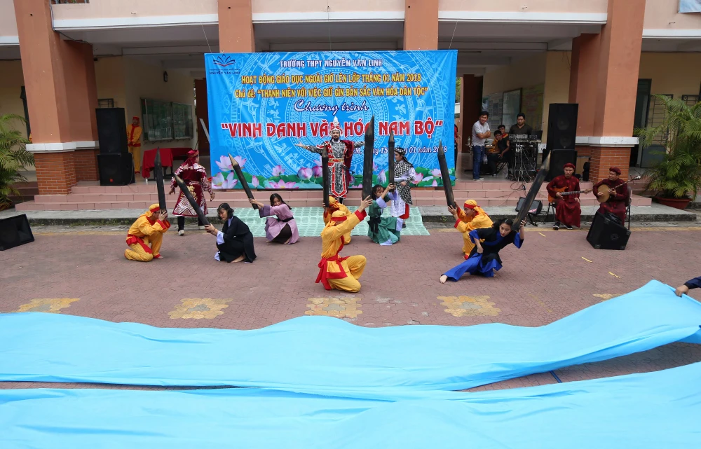Nhà trường đã cho các em học sinh vừa sinh hoạt ngoại khóa vừa học về văn hóa cổ truyền và lịch sử dân tộc thông qua hình thức sân khấu hóa cải lương.