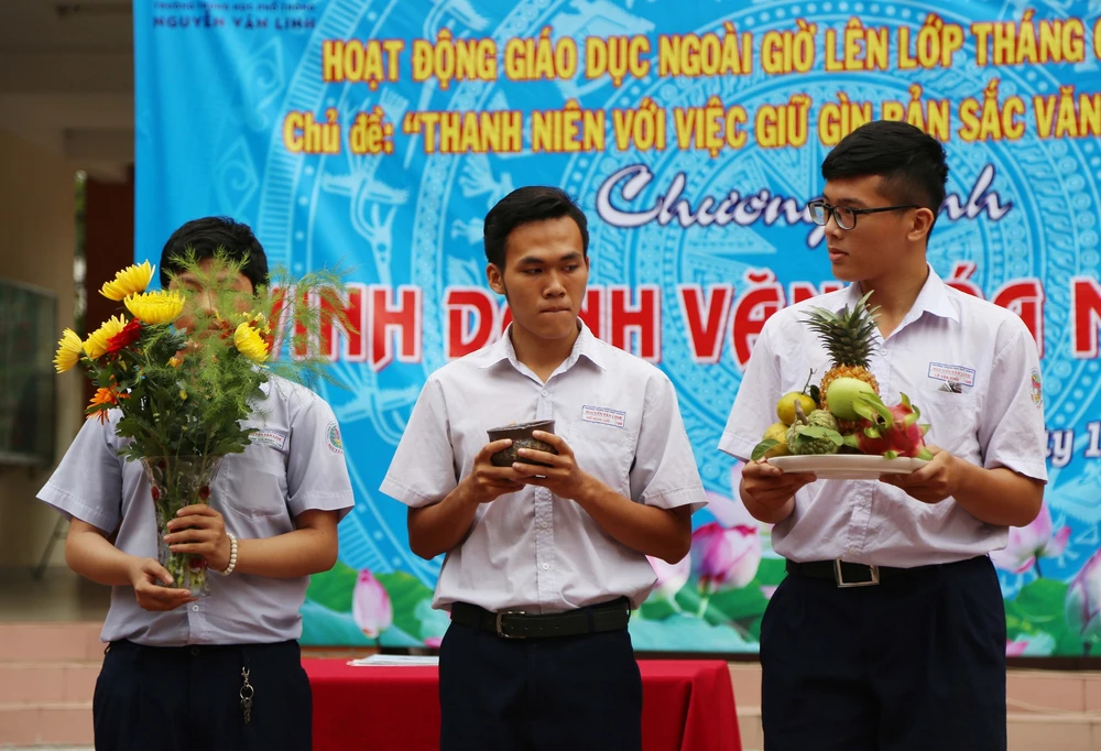 Mở đầu buổi ngoại khóa, các em được diễn giả văn hóa Hồ Nhựt Quang, Chủ nhiệm CLB Nghiên cứu và vinh danh văn hóa Nam bộ, trình bày những giá trị trong văn hóa cổ truyền, từ tục cúng kính ông bà, tục trầu cau, cưới hỏi, bánh xèo, chiếc nón lá…