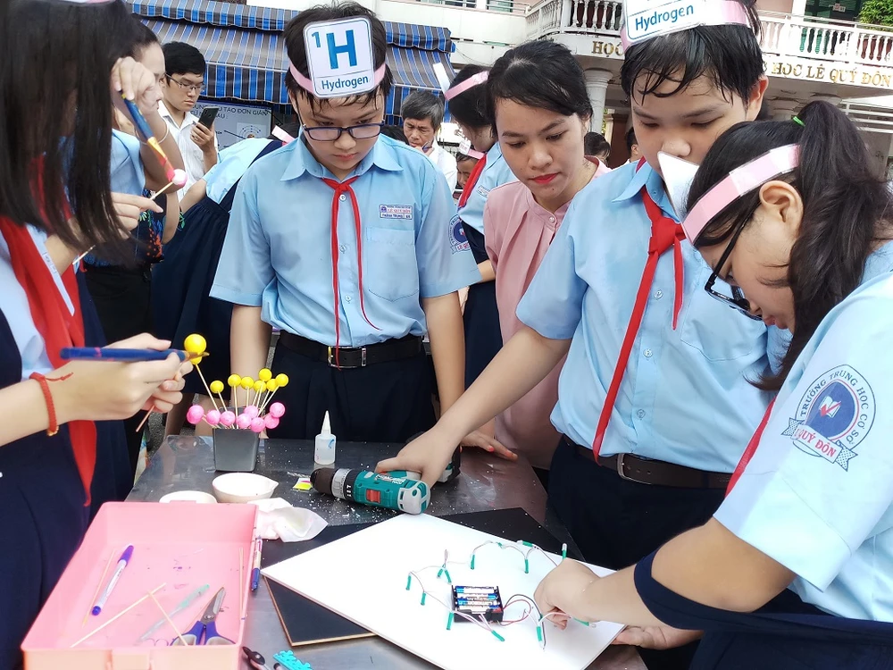 Học sinh trường THCS Lê Qúy Đôn, quận 3 , TP.HCM trong 1 tiết học ngoài trời. Ảnh: NQ