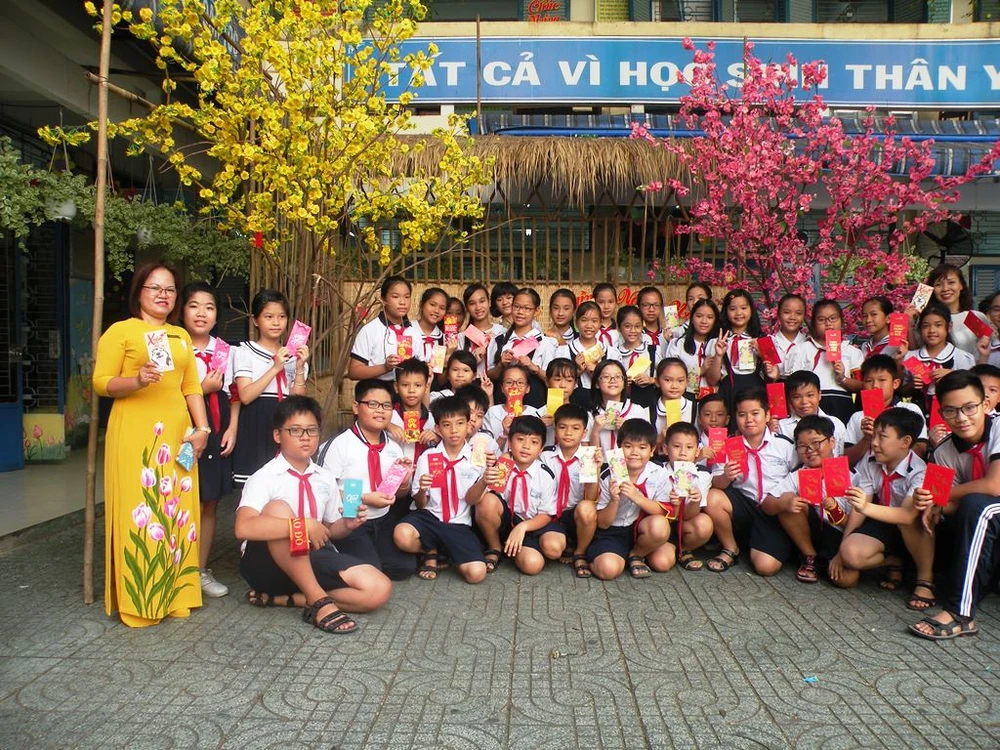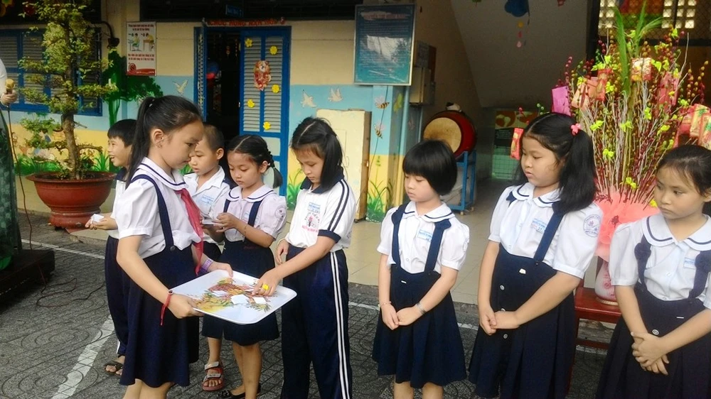 Học trò Trường Tiểu học Nguyễn Thị Minh Khai háo hức đến trường sau tết vì được nhận lì xì và tham gia vào những trò chơi hấp dẫn