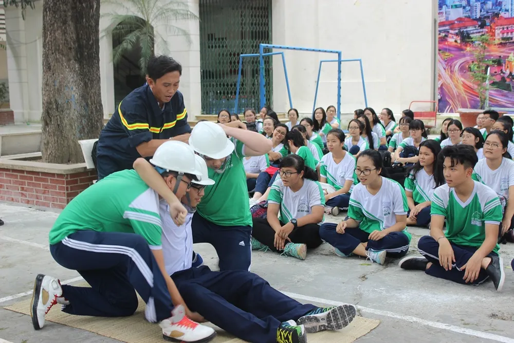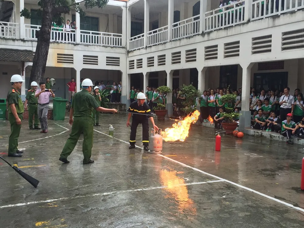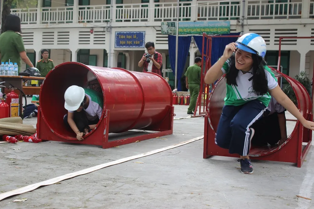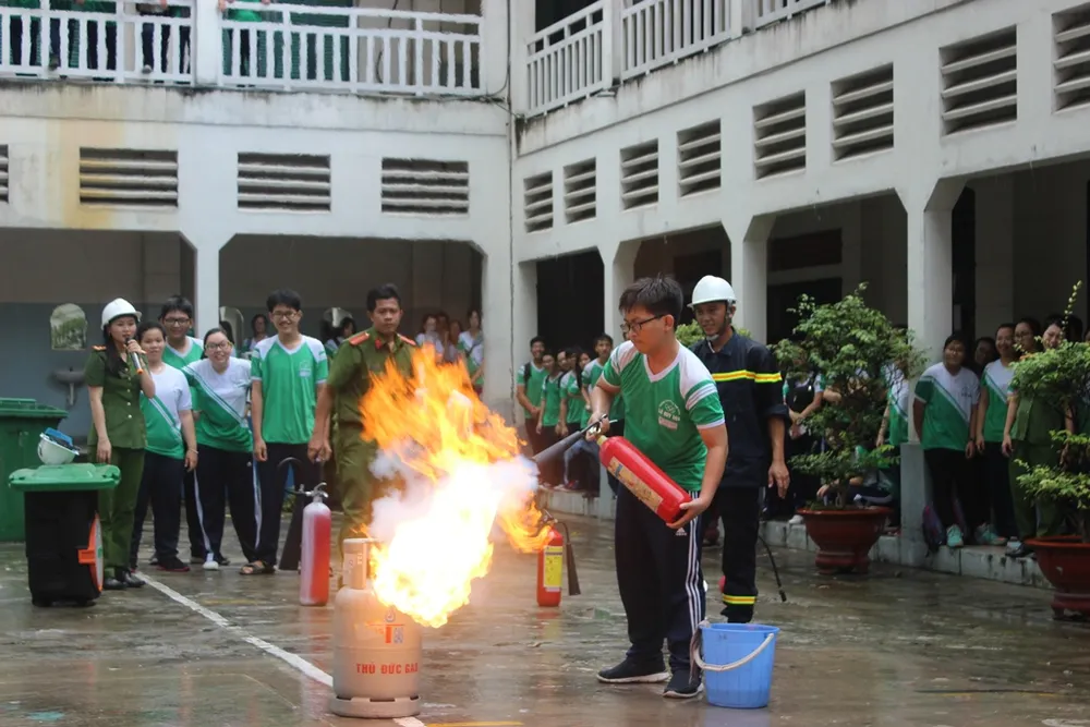 Ngày 22-8, trường THPT Lê Quý Đôn (quận 3, TP.HCM) đã tổ chức buổi tuyên truyền và thực hành kỹ năng phòng cháy chữa cháy và cứu nạn, cứu hộ cho học sinh khối lớp 12.