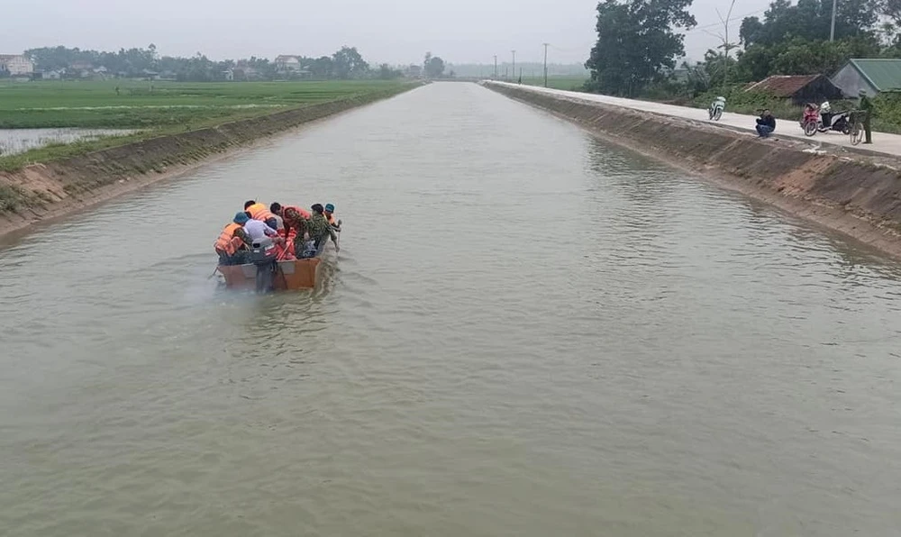 Chiều tối 6-4, lực lượng tìm kiếm cứu nạn và người dân, người thân đang nỗ lực tìm kiếm em Nguyễn Lê A. (13 tuổi, học lớp 6, Trường THCS xã Bắc Thành (Yên Thành) bị nước cuốn, mất tích trên sông Đào.