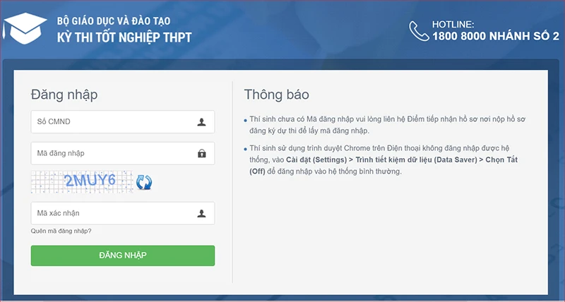 Theo hướng dẫn, học sinh truy cập vào địa chỉ http://thisinh.thithptquocgia.edu.vn (ảnh), tài khoản là số CMND hoặc CCCD, còn mật khẩu của mỗi học sinh được gửi tới từng lớp.
