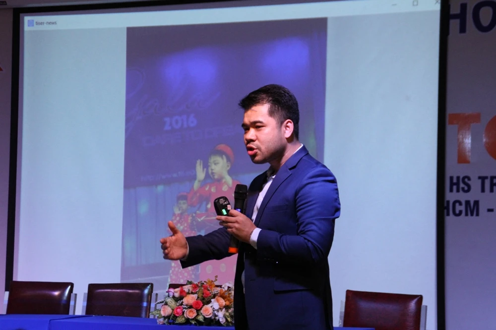 Ông Lê Đức Hoài Ân - Giám đốc điều hành trường TIS đang giới thiệu về cuộc thi. Ảnh: BTC