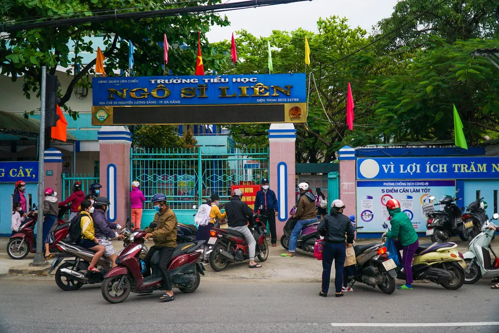 Sáng 21-2, hầu hết các trường tiểu học trên địa bàn TP Đà Nẵng đã hoạt động trở lại. Ghi nhận vào 7 giờ tại trường Tiểu học Ngô Sĩ Liên (quận Liên Chiểu, TP Đà Nẵng), hàng trăm học sinh được phụ huynh đưa đến trường.