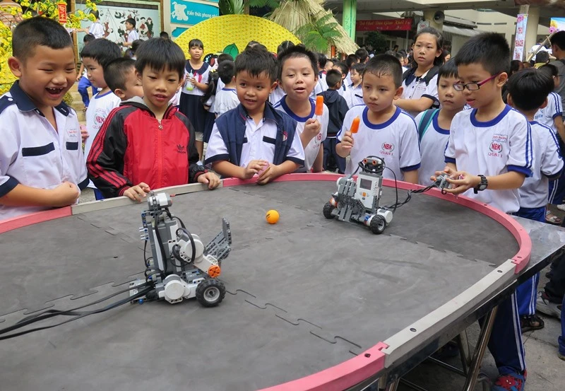 Học sinh Trường Tiểu học Nguyễn Bỉnh Khiêm (quận 1) trong một hoạt động ngoài giờ lên lớp tại trường.