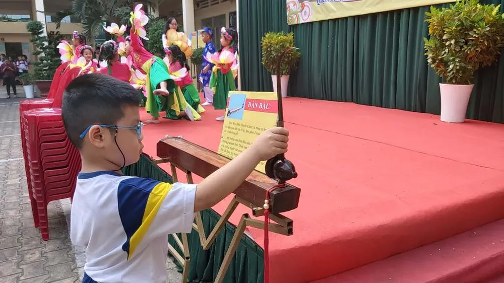 Tham dự chương trình, học sinh đã có những trải nghiệm thú vị khi lần lượt tìm hiểu các loại nhạc cụ dân tộc.