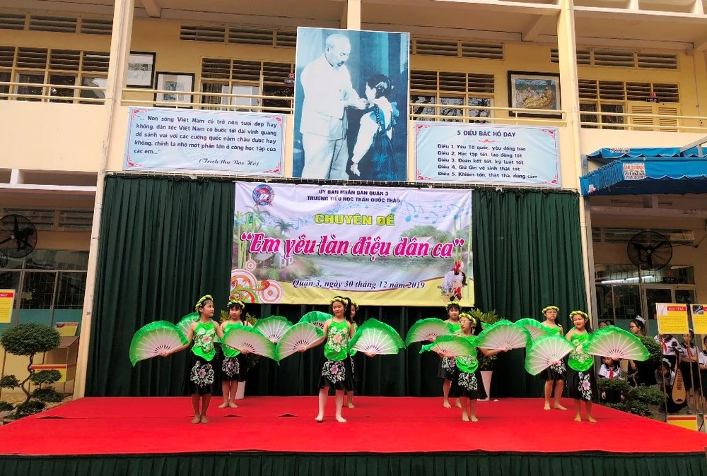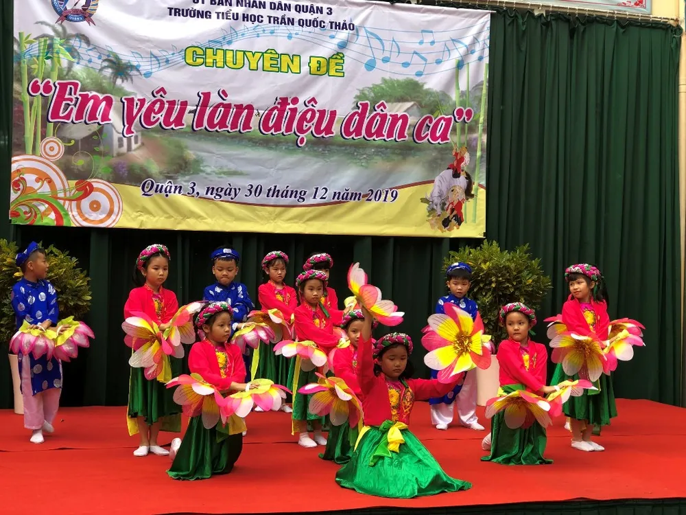 Sáng 30-12, Trường Tiểu học Trần Quốc Thảo, quận 3 tổ chức chuyên đề "Em yêu làn điệu dân ca" thu hút nhiều hoc sinh tham dự.