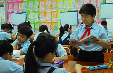 Học sinh lớp 5 Trường Tiểu học Lương Định Của, quận 3, TP.HCM trong một tiết học nhóm. Ảnh: HTD