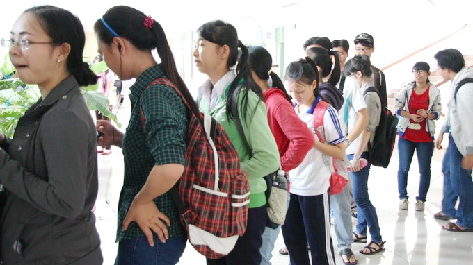 Sinh viên các ngành đào tạo ngoài sư phạm Trường ĐH Sư phạm TP.HCM xếp hàng đóng học phí - Ảnh: Trần Huỳnh
