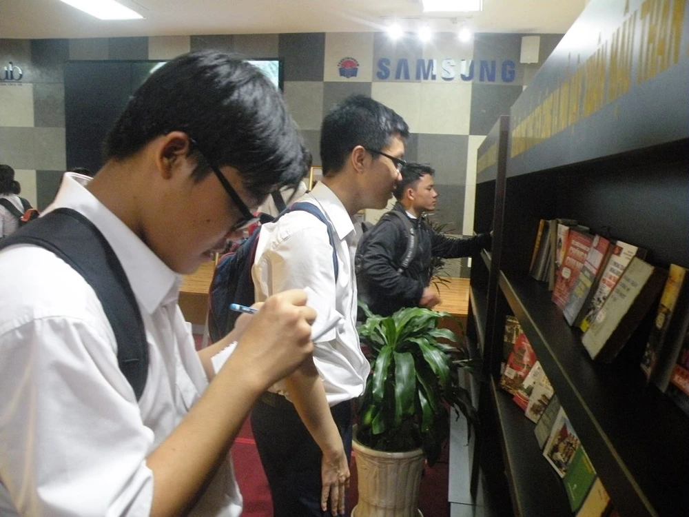 Các em xuống xe tới Thư viện Khoa học Tổng hợp.