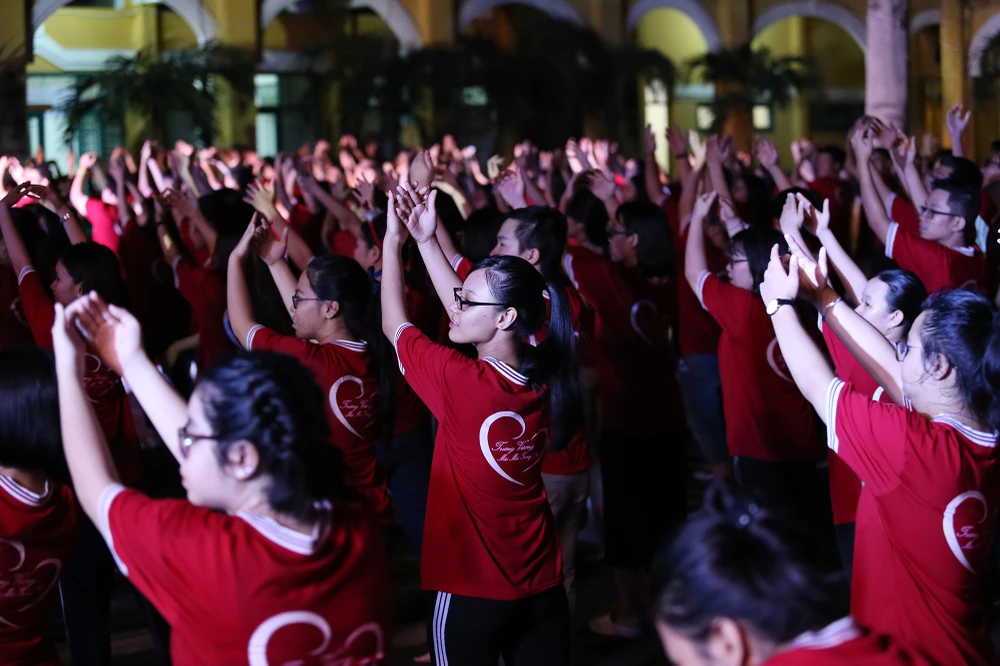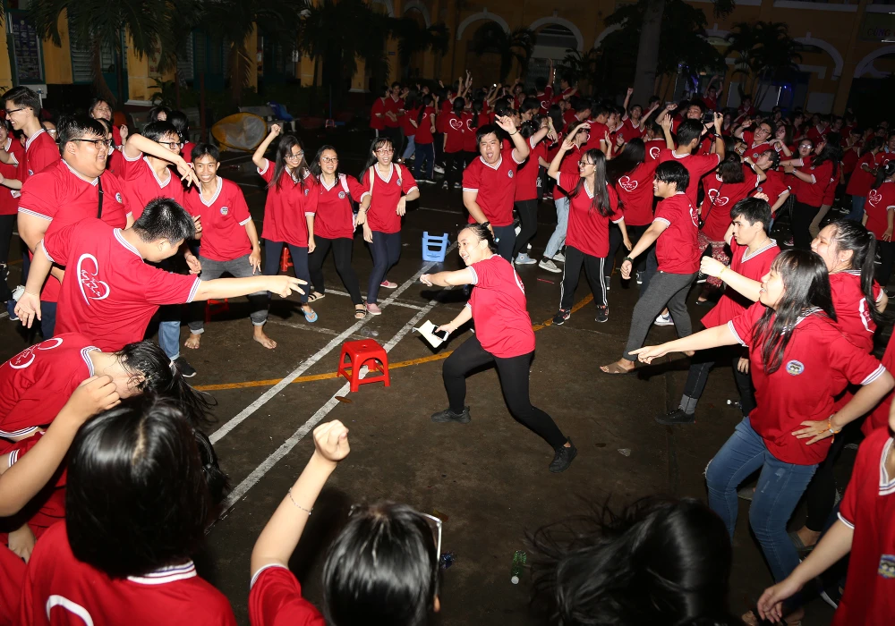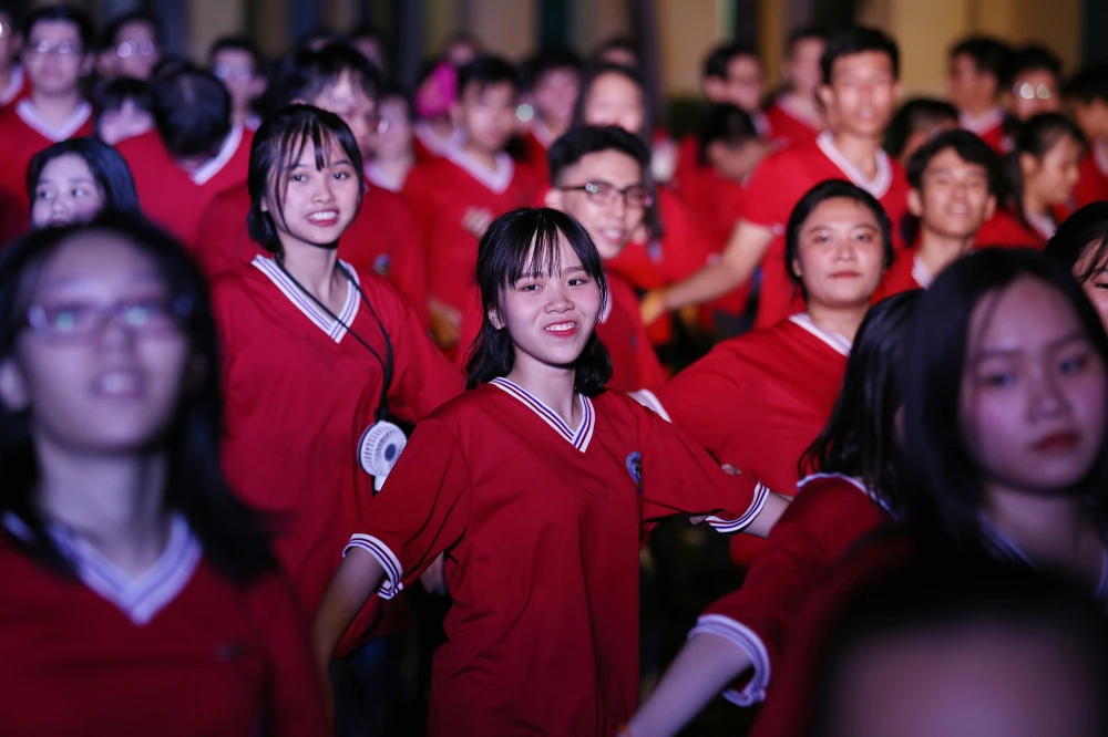 Từ 18 giờ, Ban giám hiệu, thầy cô giáo viên chủ nhiệm cùng toàn thể học sinh khối 12 tham gia đồng diễn dân vũ “Chúc mừng tuổi 18” cho học sinh lớp 12.