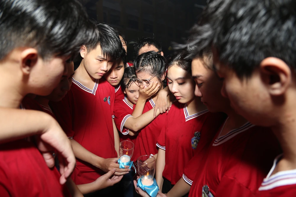 Giáo viên chủ nhiệm mang ly nến trao đến các em học sinh mang ý nghĩa truyền lửa cho các em vượt qua những khó khăn, thử thách phía trước.