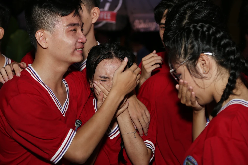 Học sinh khối 12 bật khóc khi sắp phải chia tay thầy cô, bạn bè.