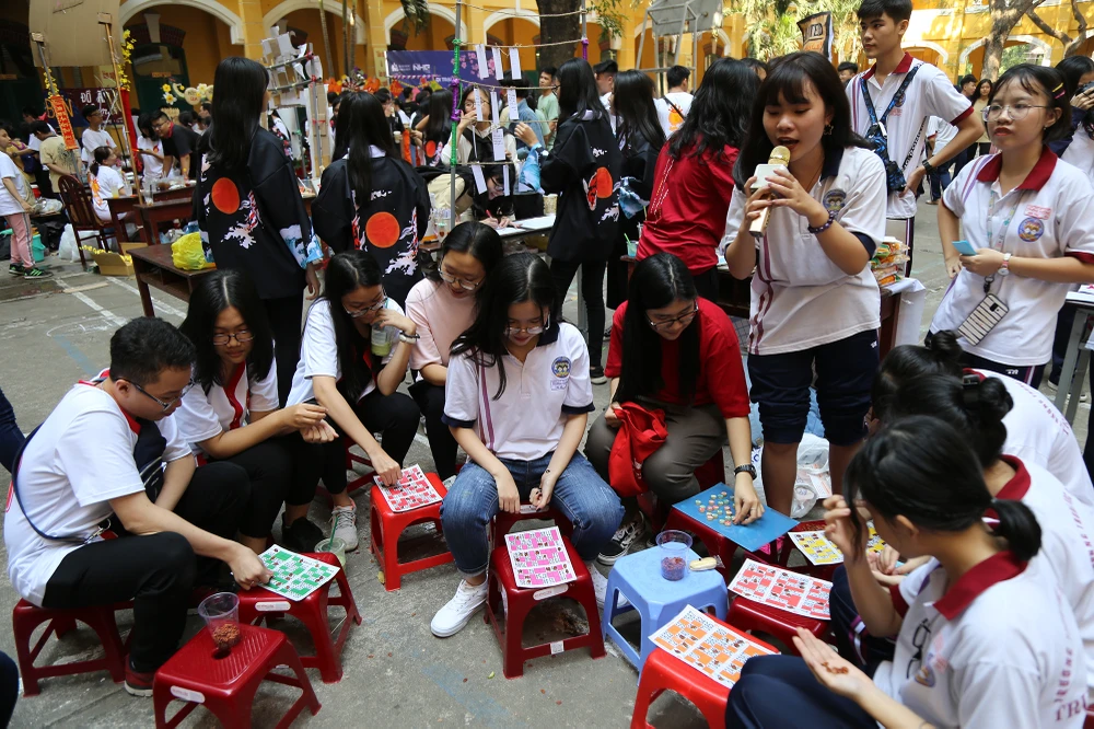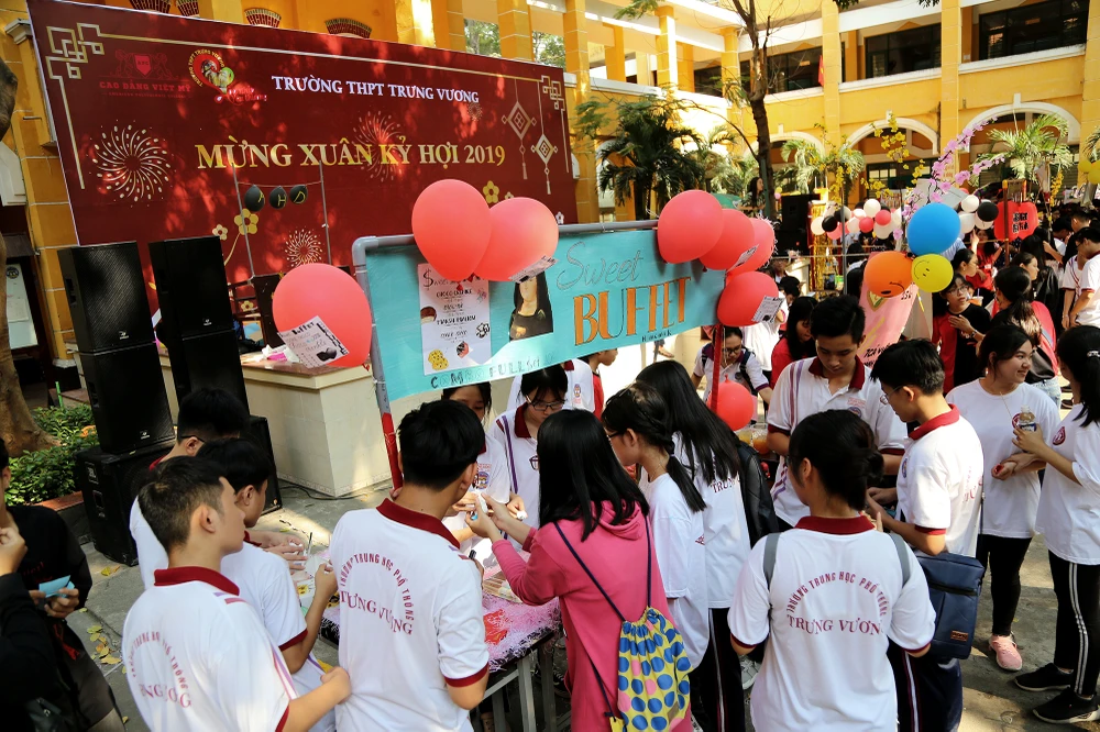 Trước đó, các gian hàng xuân dành cho các lớp bày bán các mặt hàng đồ ăn, nước uống cũng thu hút đông đảo học sinh tham gia.