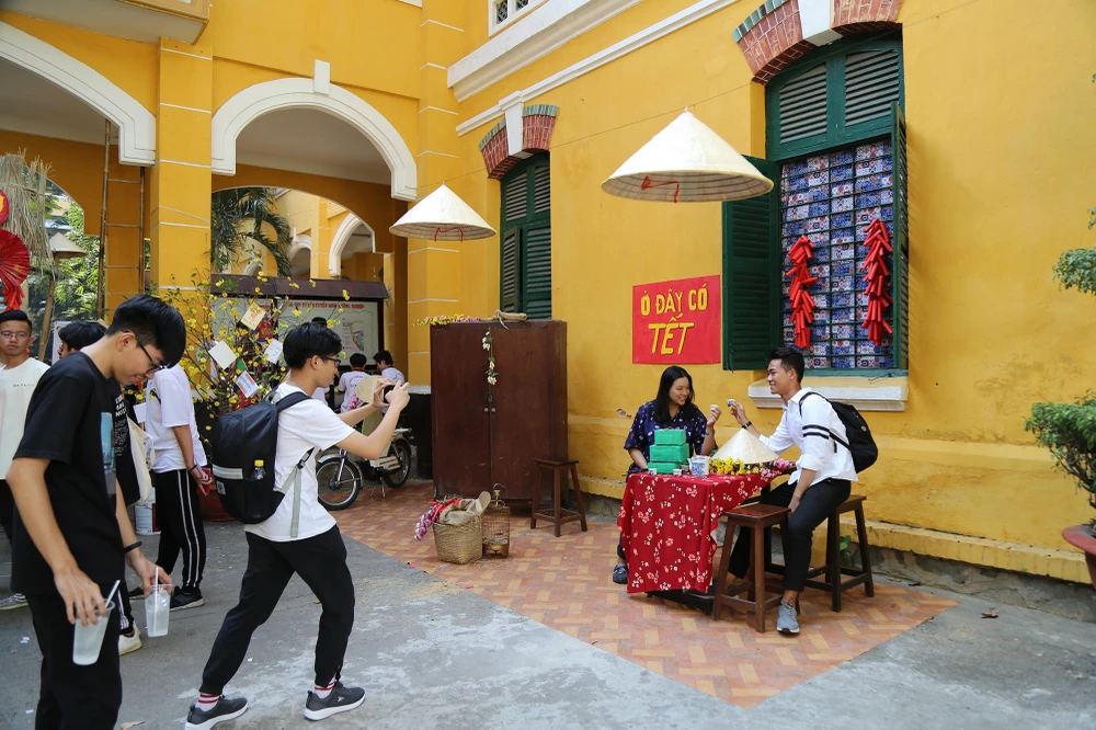 Không gian Tết dành cho học sinh chụp ảnh ngày trong trường.