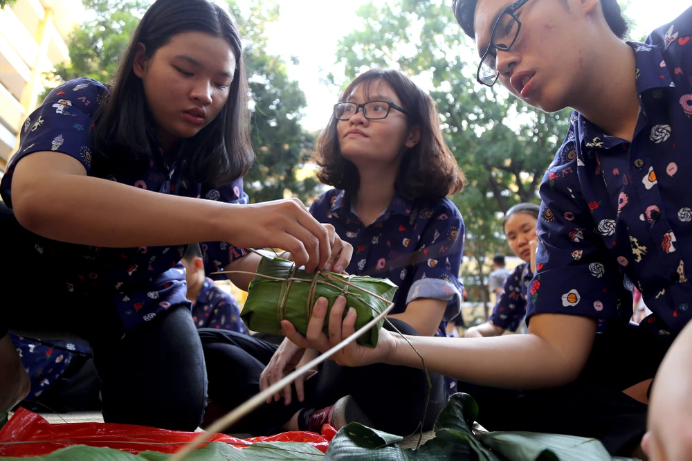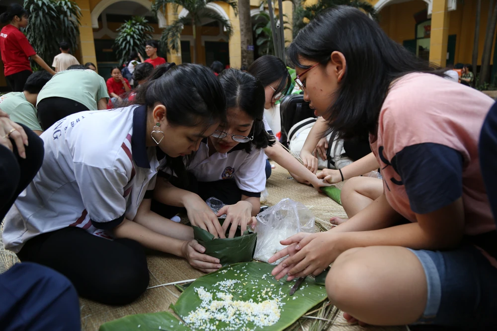 Ngày hội gồm nhiều hoạt động vui chơi hấp dẫn. Trong đó, hoạt động nổi bật hơn cả là chương trình dành cho học sinh gói bánh chưng, bánh tét Tết.